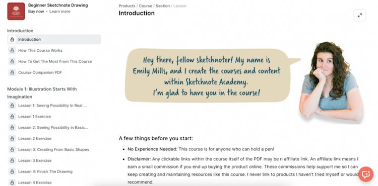 All in all, Emily’s Podia site gives her and her students a beautiful, easy-to-navigate home base for all of her sketchnoting products.