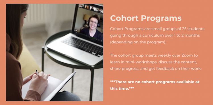 Emily offers two types of courses as part of Sketchnote Academy: Self-paced courses, which students can take on their own time, and Cohort Programs, where students work through a curriculum together over a set period.
