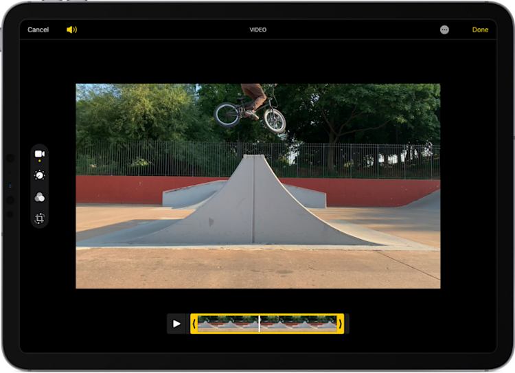 To preview your trimmed video, tap the play button. Tap “Done”, then choose “Save Video” (saves only the trimmed version) or “Save Video as New Clip” (saves the trimmed version and the original).