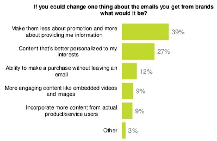 39% of consumers wish brand emails were less promotional and more informational.