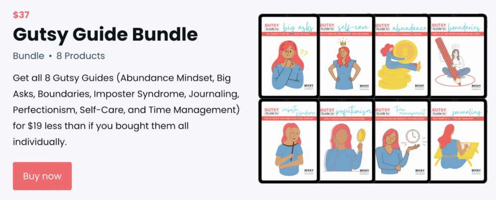 With those individuals in mind, Becky has repurposed a lot of her existing content into Gutsy Guides that help tackle individual issues, like boundary-setting, making big asks, and overcoming imposter syndrome.