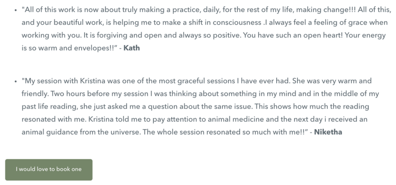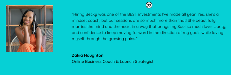 For example, testimonials on entrepreneur and mindset coach Becky Mollenkamp’s coaching page emphasize the value of Becky’s product, her coaching services: