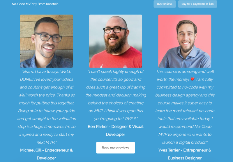 That’s how NoCode MVP handles the reviews for their course: