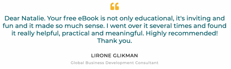 You can include customer quotes on pages for free digital downloads, too. Natalie Sisson offers a free guide, Get Paid to Be You, as a lead magnet to encourage email signups. On the lead magnet page, she includes this quote: