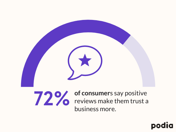 Testimonials also help you build trust with your audience. 72% of consumers say positive reviews make them trust a business more.