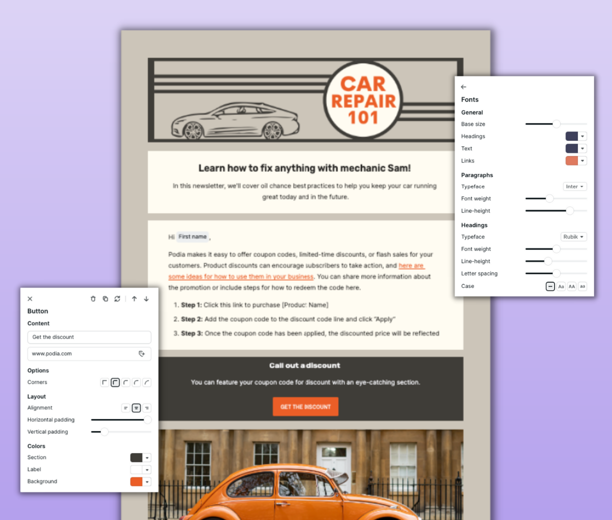But you don’t have to be a pro to use Podia Email — and you shouldn’t have to be. Podia Email is designed so that anyone at all can create beautiful emails and send them to the right people.