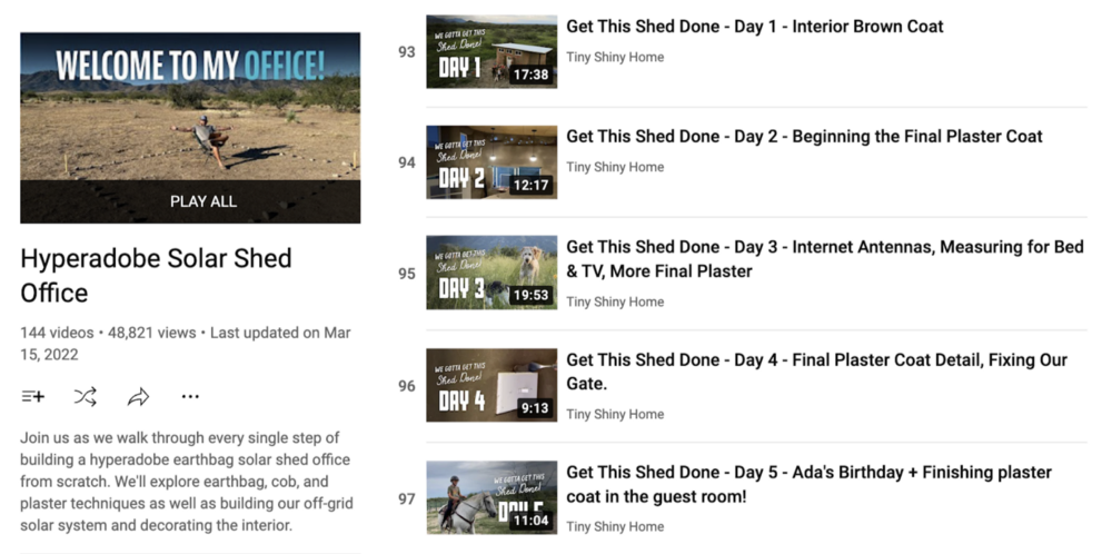 The family was working on a solar shed building, so they committed to making a YouTube video every day for thirty days to show their progress.