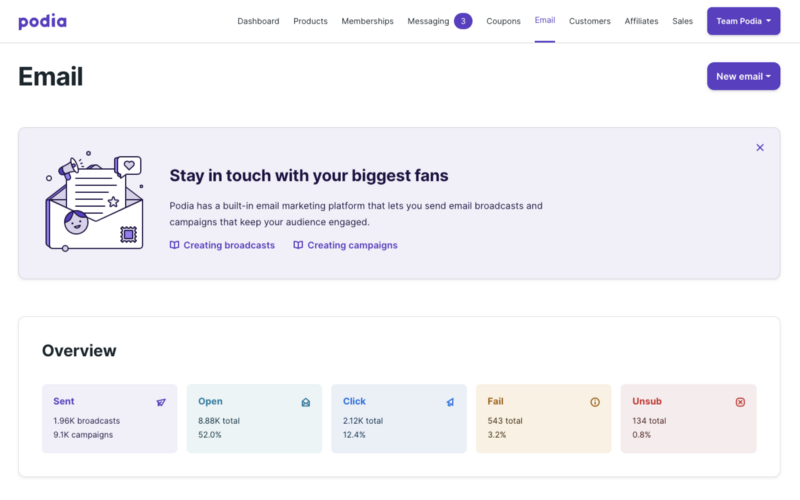 Want to optimize your email campaigns? Podia lets you do that, too.