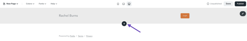 Click the plus sign to add a section, then select “Bio” as your section type. When you create a Bio, you can add it to multiple pages on your Podia site without rewriting the content for each page. Just add a Bio section to any page where you want your bio to show up.