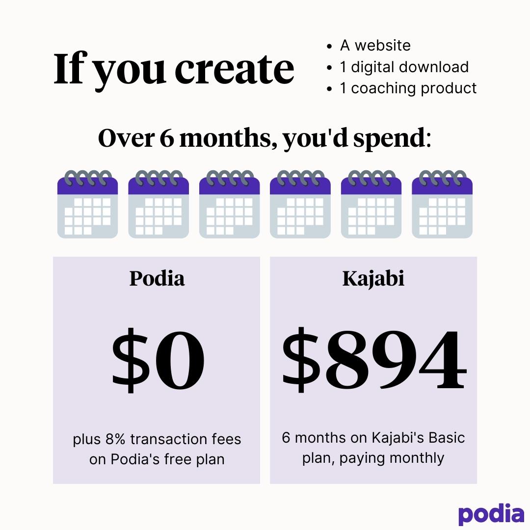If you used Podia instead of Kajabi, you’d save over $1,000 while running the exact same business.